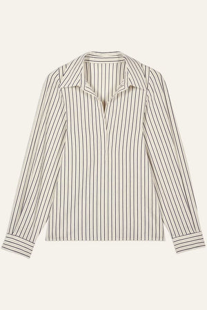 The FELICIA shirt is an elegant, chic design that will quickly find its way into your wardrobe. This is a striped shirt that plays with gender with a masculine-style pattern, highlighted by the stripe placement. The sleeves are long and voluminous, and the buttons are matte black for contrast. We love being able to wear it day and night, combining it with so many different styles. Wear with a pencil skirt or jeans and some stylish accessories!