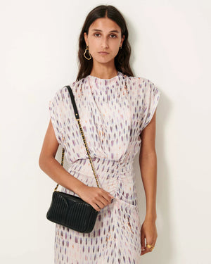 Buenasera is a midi, sleeveless dress in fluid silk-viscose satin fabric, printed and finished in Italy, exclusive Sessùn pattern.