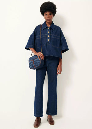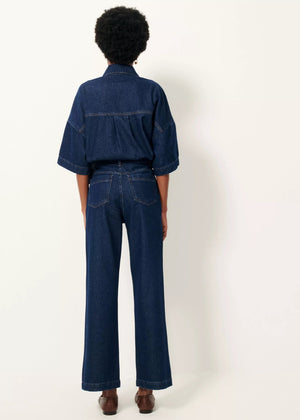 DAVIS is a mid-rise straight-leg jeans with slight flare at hem, in compact indigo denim twill, softened with a single wash.