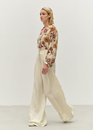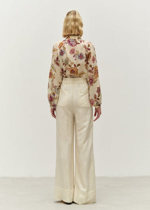DIALOGUE is a floral-printed blouse with long-sleeves.