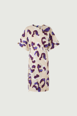 The Ecuador dress is a short-sleeved printed organic cotton poplin dress.