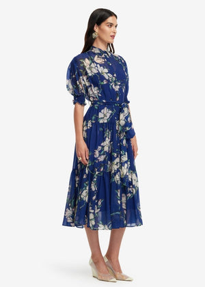 Ellie Bishop Midi Dress in Midnight Magnolia from Leo Lin