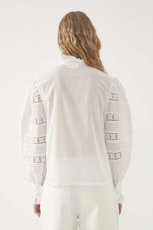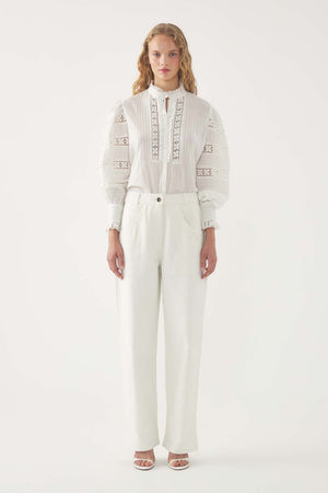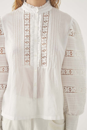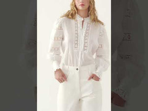 Lena Blouse is a cotton button-down blouse with English embroidery inserts. on the bib and sleeves. Please note that it is a small fit. Therefore we advise you to pick one size up.