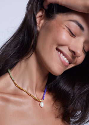 MAGIC MOMENTS is a mixed-colour bead necklace. For the bold. A mix of colors that should clash, but don’t. Magic Moments is proof that rules are overrated when it comes to jewelry.