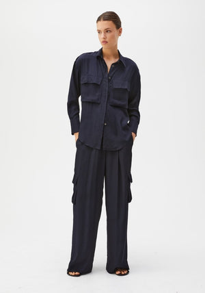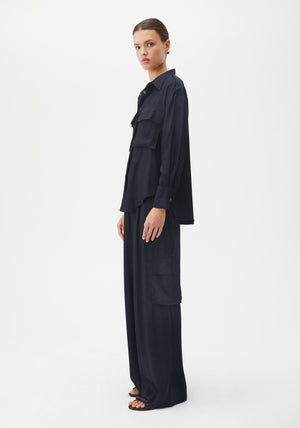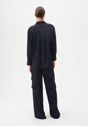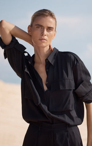 URSULA is a relaxed fit silky button down shirt. Wear this silk shirt with a paid of denim jeans or the matchy silk Ursula pants.