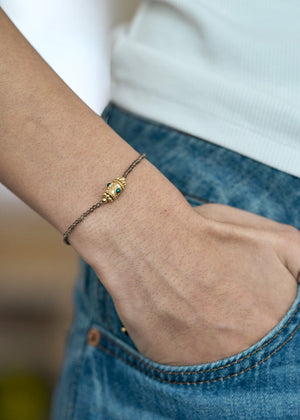 RAKHI YUVI is an adjustable beaded bracelet featuring a gold-plated charm.