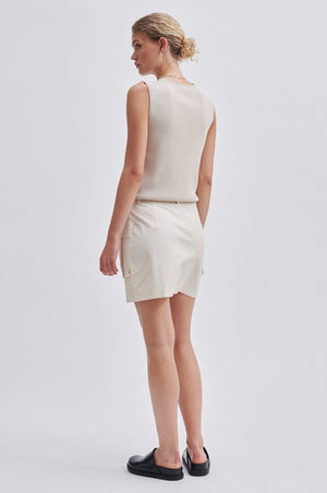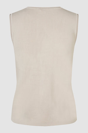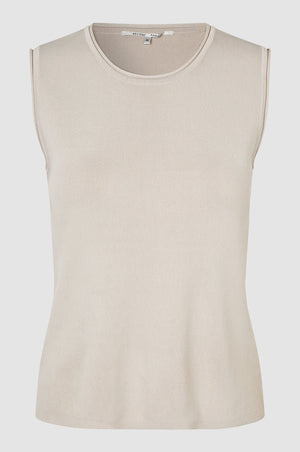 WILDA is a knitted top. Made in a knitted viscose blend with a soft and stretchy quality. Featuring a round neckline and rolled edges at neck and armholes. Regular, straight fit.