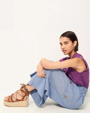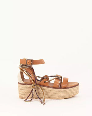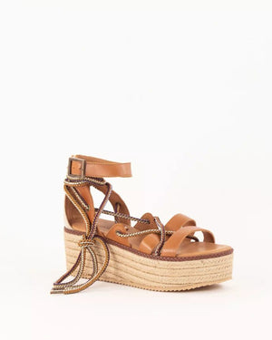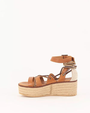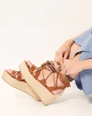 VILLALUENGA are cross-strap wedges in cow leather with multicolored rope details, made in Portugal. Rope wedges.