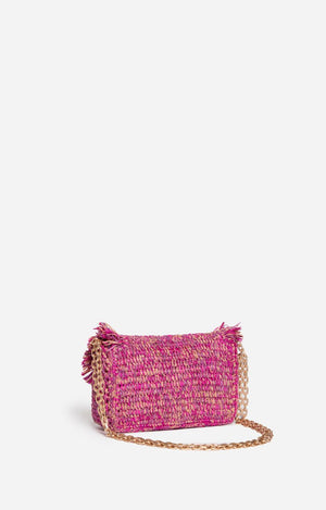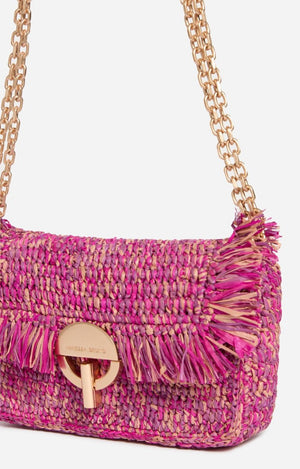Small Moon Raffia Bag in Fushia