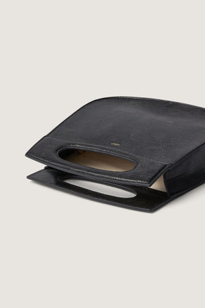 CHERI is a Black lizard effect embossed leather bag - Hand, shoulder, or cross-body bag- A removable gold chain and leather shoulder strap, length 104 cm (41" L) - A removable and adjustable canvas shoulder strap, maximum length 100 cm (39 1/3" L) - Golden metallic details- Height 27 cm, width 25 cm, depth 7 cm (10 2/3" H x 10" W x 2 3/4" D)- LWG leather