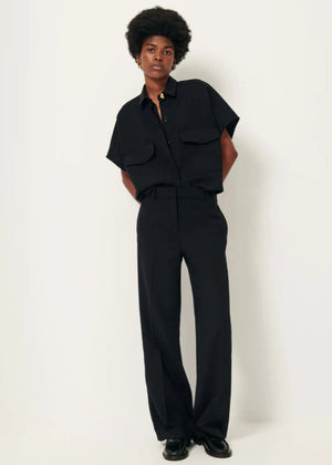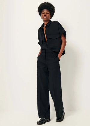 TANCREDE is a regular-waist, straight-leg trousers with sharp pleats in broken twill fabric.